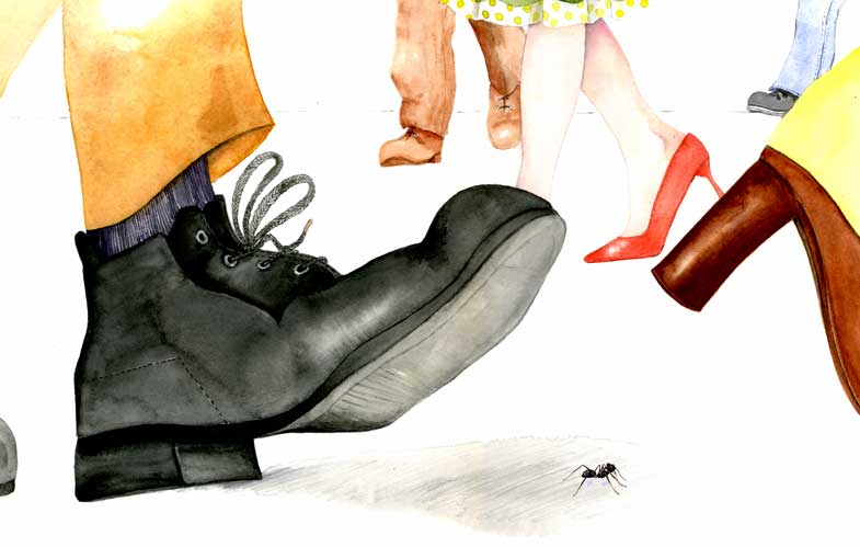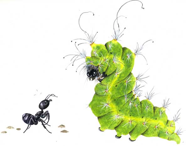 Ant Ant Imagine…. Imagine being…. Imagine being an…. Ant! Imagine how the world would be, so big and loud and scary. Even just a caterpillar, would be giant, fierce and hairy.